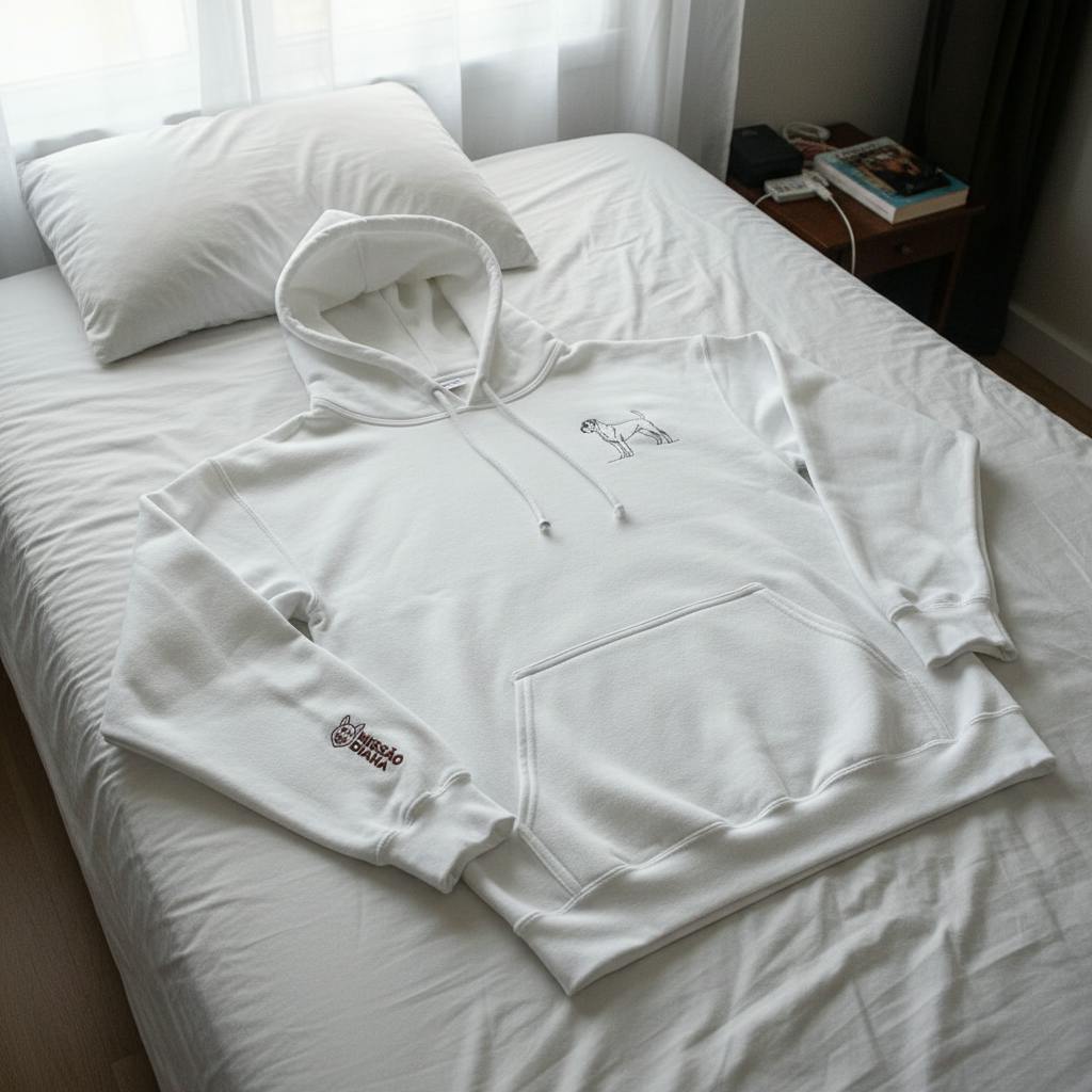O hoodie é super confortável e nota-se logo a qualidade do tecido. O bordado da silhueta é discreto e bem feito, não parece nada frágil. Já lavei duas vezes e continua impecável.